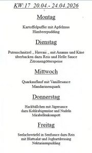 Falls ein Essen abbestellt werden muss, (z.B. krankheitsbedingt, Tagesausflug, Klassenfahrt, …) bitte bis 7:30 Uhr in der Küche des Altehilfezentrums unter dieser Nummer melden: 05572 – 94861516